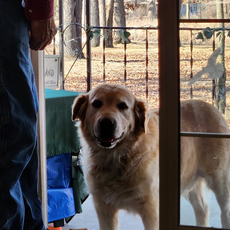 Poop came every day, even when we weren’t home. Our doorbell camera always let us know when he was checking in. He’d stand at the door peeking in for a while and then lie down on the porch just in case we got back shortly. This might happen several times a day if we were gone for very long. He was always happy to see us driving back in.
